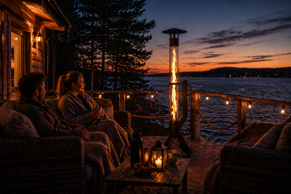 Med en terrassvärmare som drivs av pellets får du inte bara värme, utan också en levande låga som skapar en helt annan känsla än traditionella värmare.